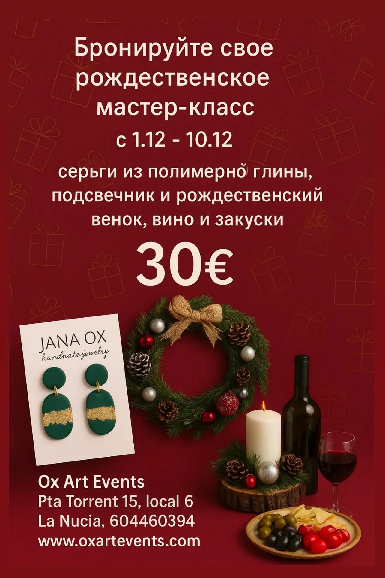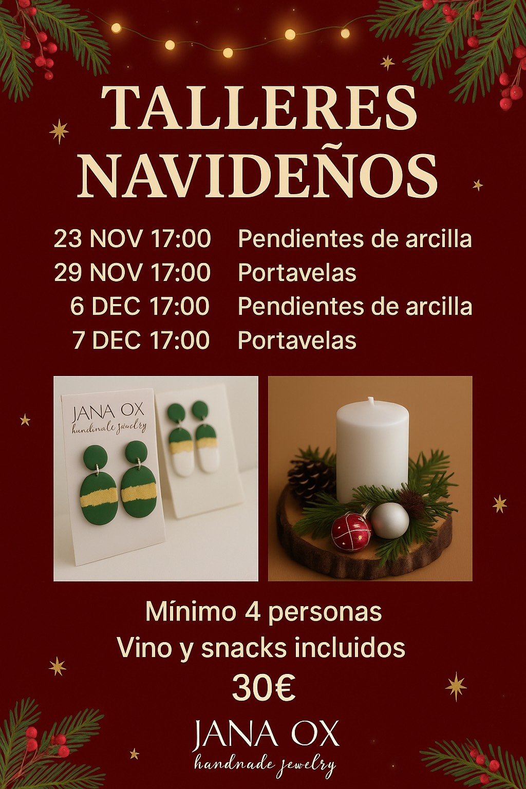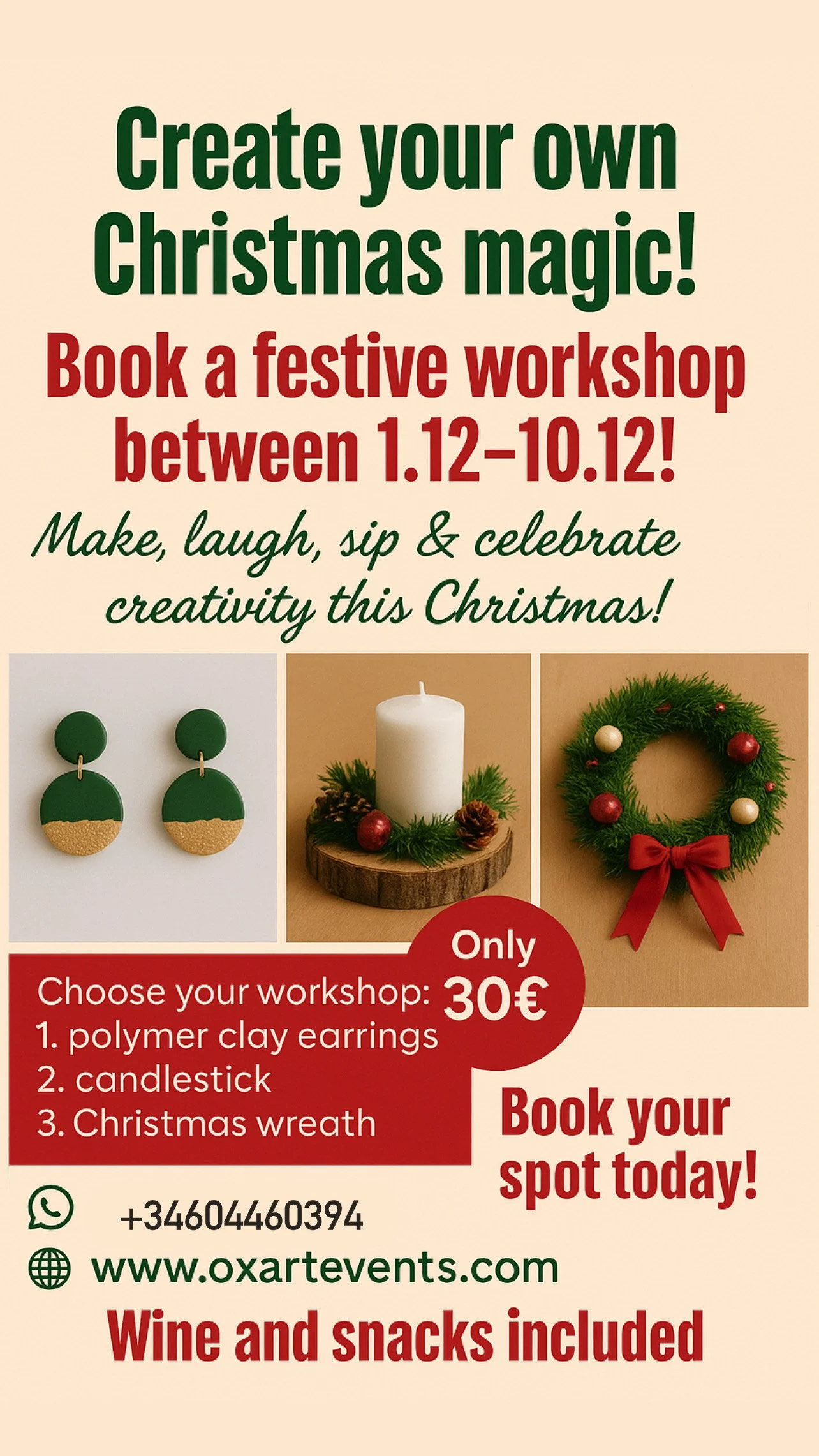 Pick your favourite Workshop wich includes Wine & Snacks! Workshop lasts 2,5-3 hours. All workshops includes instructor, materials, drinks and snacks!